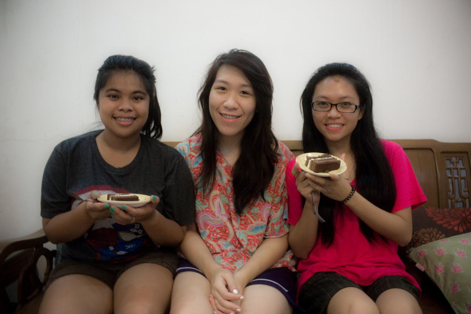 In the morning of November 28th, my mom suddenly screams my name, told me to get up. It's so weird, cause I just told her yesterday, that today I don't have any class to attend. But my mom just keep yelling, telling me to get up and get out. And then when I open my door with anger, there they are. My lovely and sweet boyfriend and bffs.. Bringing a cake to greet me happy birthday.. :")